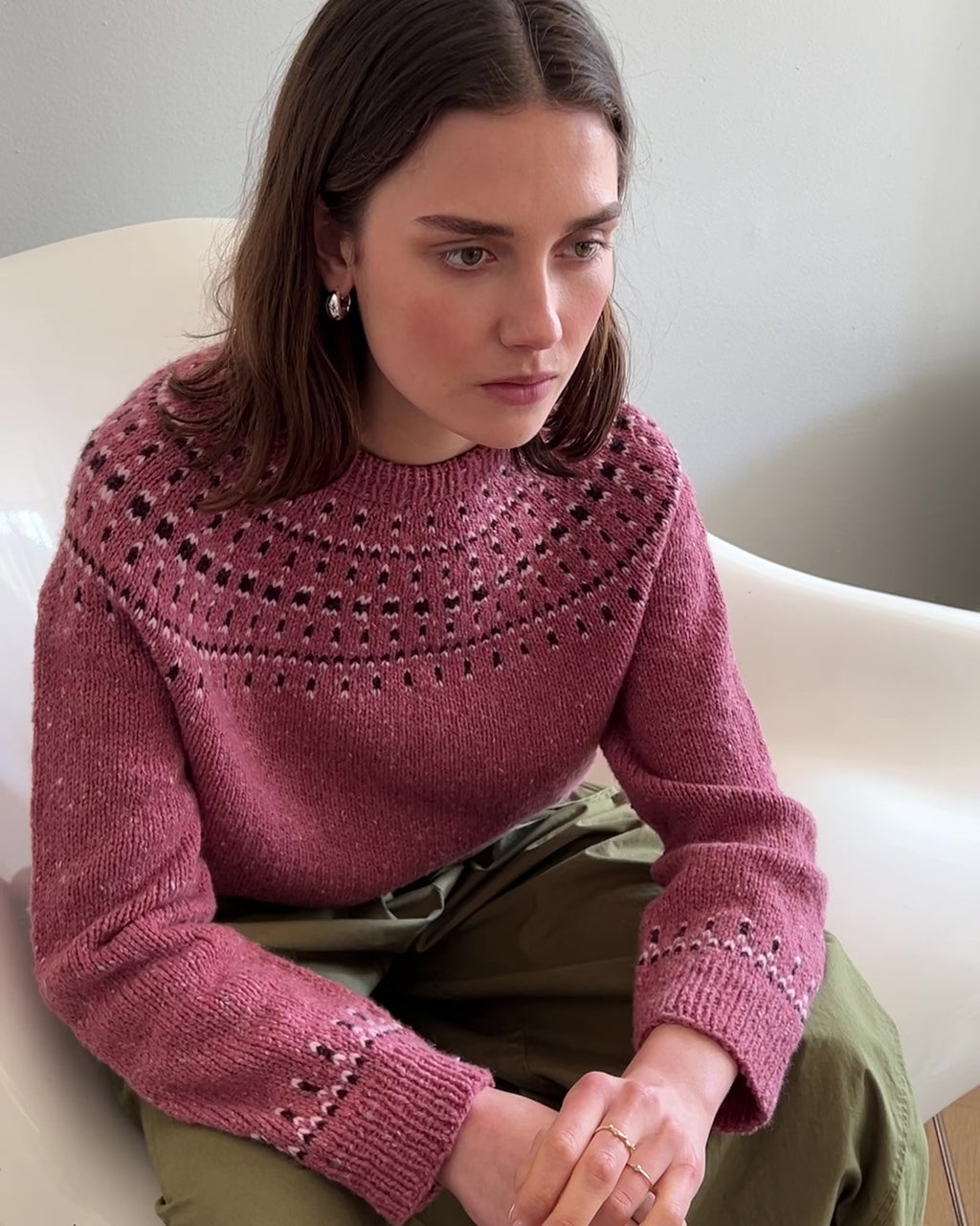 Kyholm er en stilren og klassisk sweater, som du kan bruge året rundt. Sweateren har et smukt bærestykke og fine detaljer på ærmerne. Kyholm Sweater er et rigtig godt sted at starte, hvis du ikke har strikket flerfarvestrik før. Du strikker skiftevis glatstrik og flerfarvestrik med få farver og gentagelser, så der er en god rytme i bærestykket.